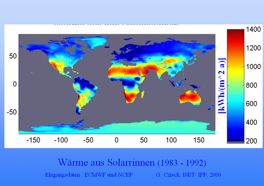 Die meteorologischen Daten zur Berechnung der Strahlungsleistung stammen aus Reanalyse-Projekten des ECMWF (ERA15) und des NCEP/NCAR.