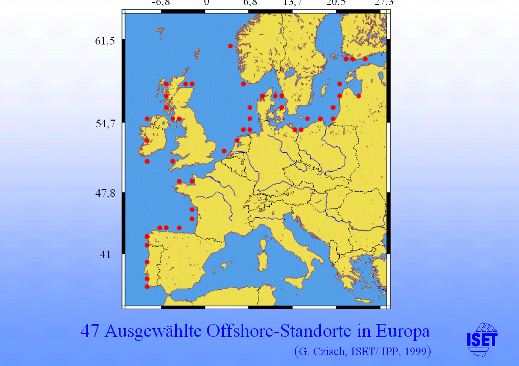 Korrelation der potentiellen Stromerzeugung aus WKA an 47 ausgewählten europäischen Offshore-Standorten