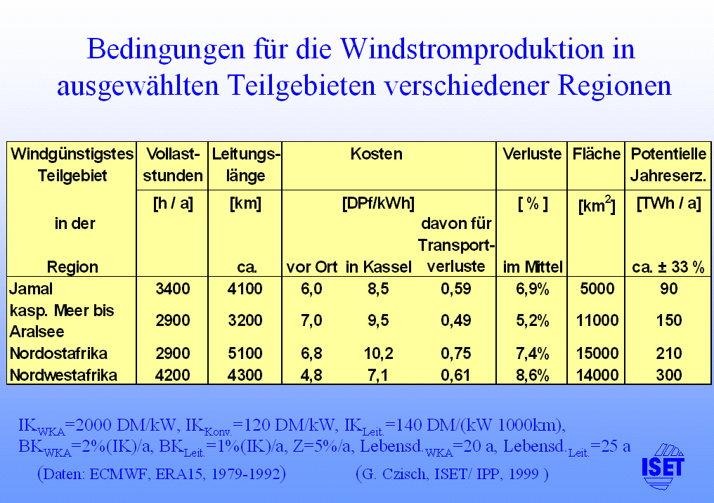 Bedingungen für die Windstromproduktion in ausgewählten Teilgebieten verschiedener Regionen