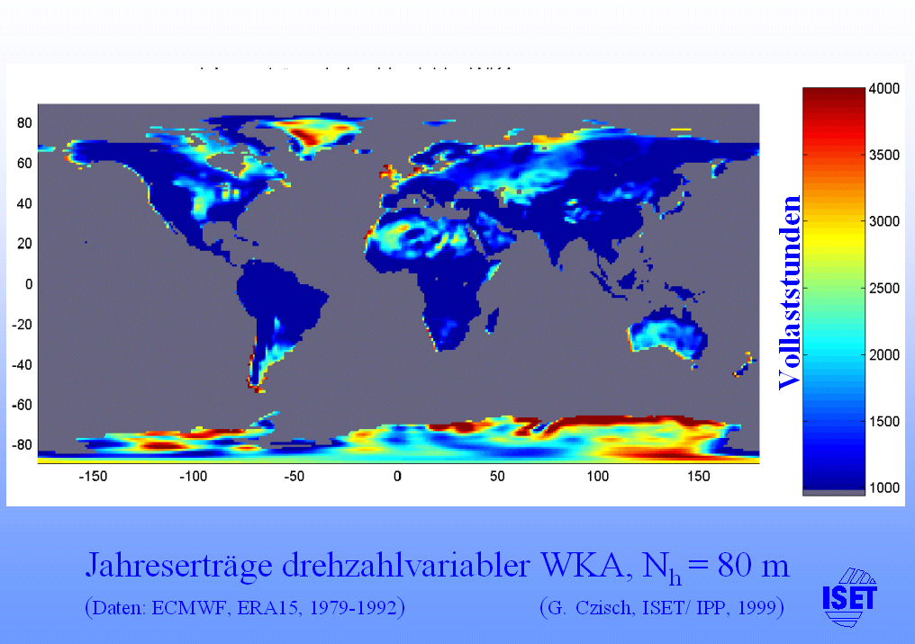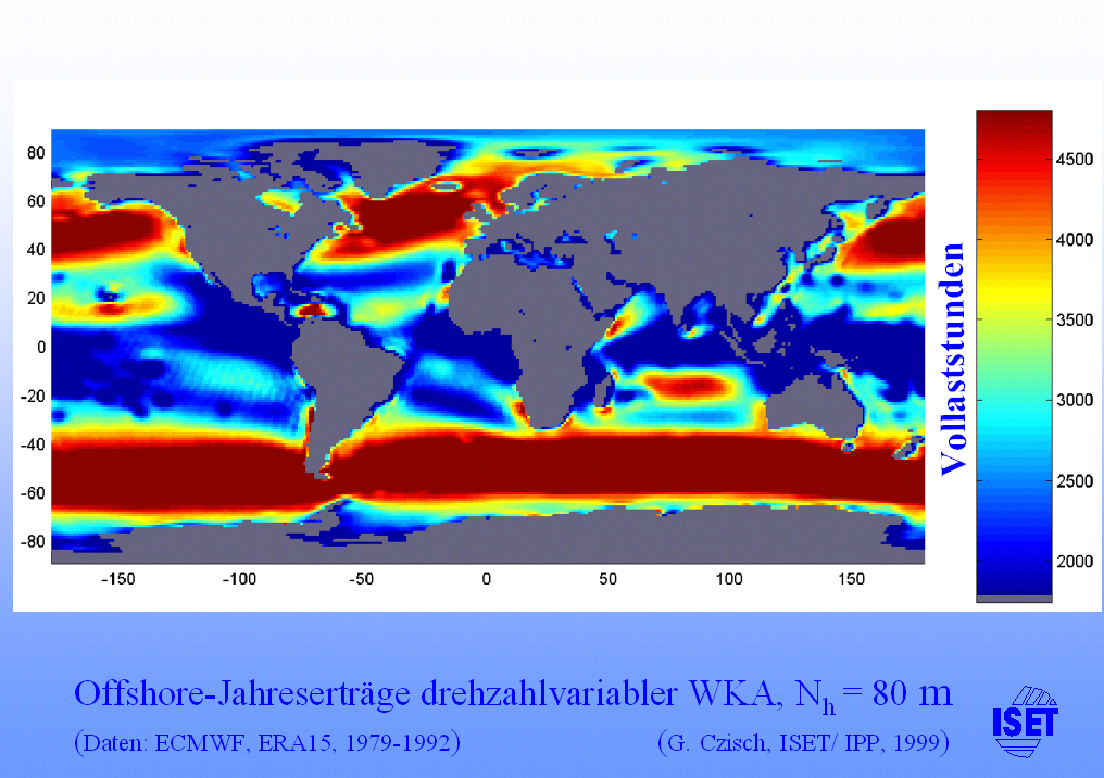 Offshore-Jahreserträge drehzahlvariabler WKA (NH=80m), weltweit