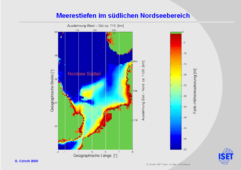 Meeresflächen im südlichen Nordseebereich in verschiedenen Wassertiefen