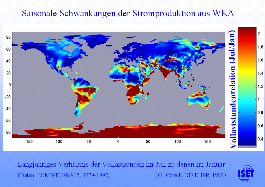 Saisonale Schwankungen der Stromproduktion aus WKA, weltweit