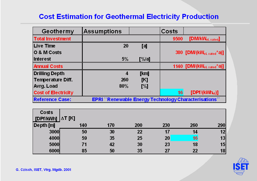 The costs of electricity from geothermal Hot Dry Rock power plants are very dependent on the temperature