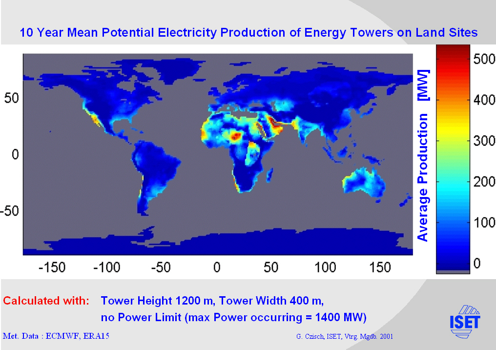 Here the conditions for land based Energy Towers of a specific design are given as annual average load. The calculations are
