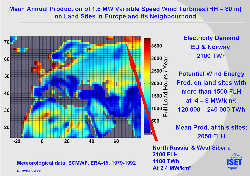 2.) The Jamal Region with northern Russia. (The calculated production quite good compares with independent calculations of Risø et al. {see REFERENCES [4] in the text version}) |