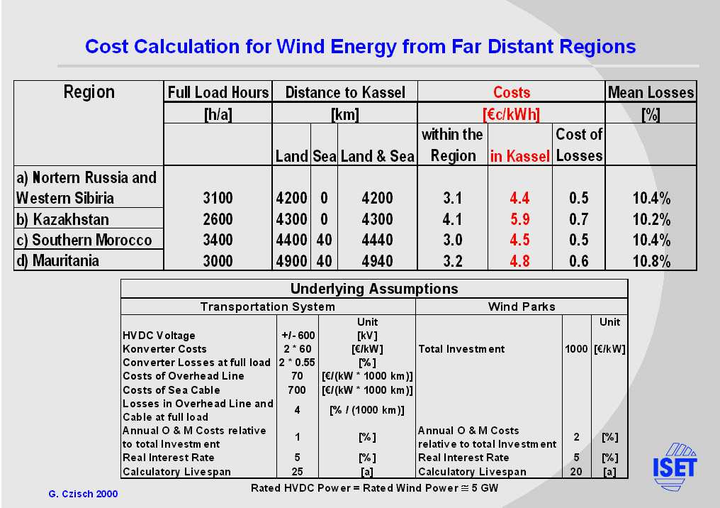 - The underlying assumptions for the transport system and the wind parks can be found in the lower table. (Costs of HVDC Components can be found at REFERENCES [10] in the text version.)